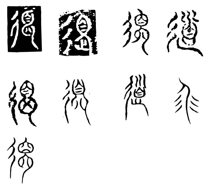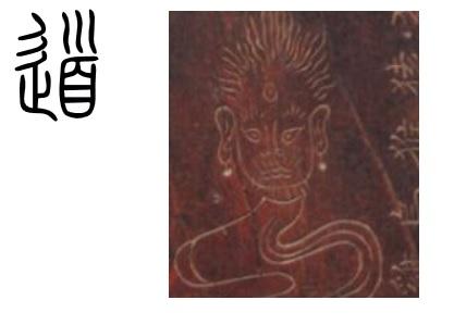 古文道,比小篆道(见上)更象是人首蛇身:首在外,又象颈、双臂、蛇身,一为道,道立于一。