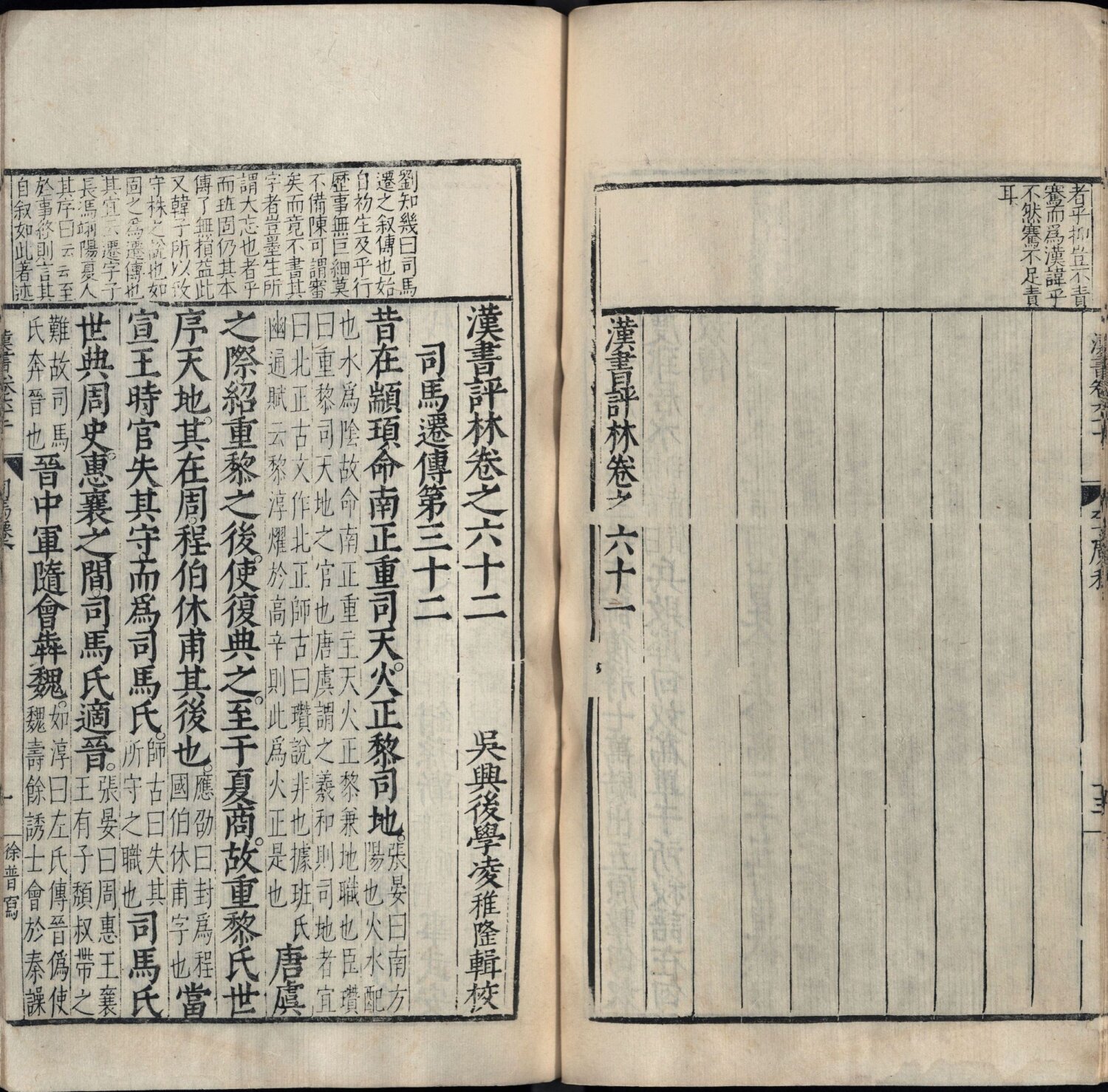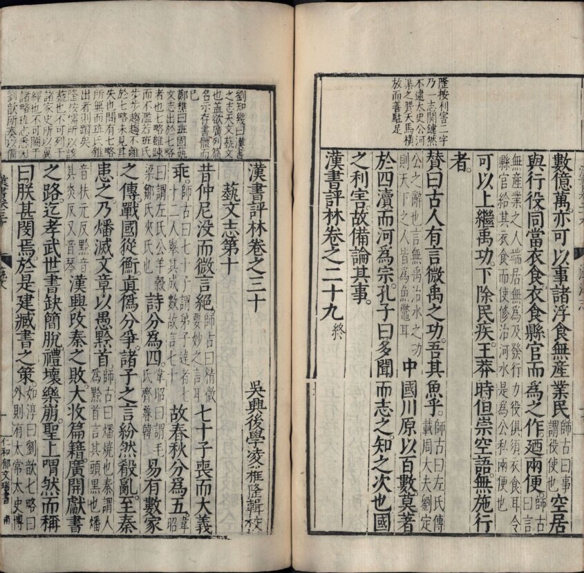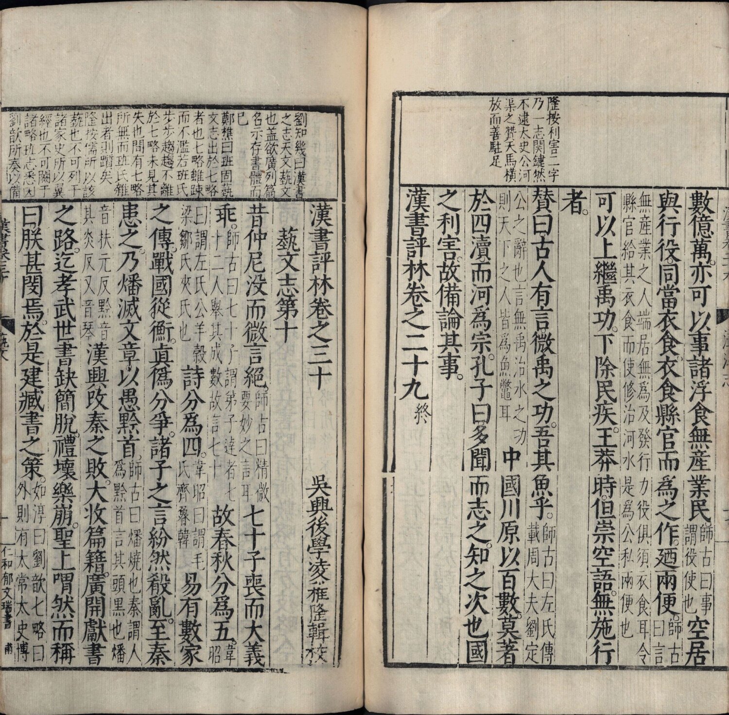 汉书评林. 一百卷. 汉. 班固撰. 明. 凌稚隆辑评. 明万历十一年吴兴凌氏刊本