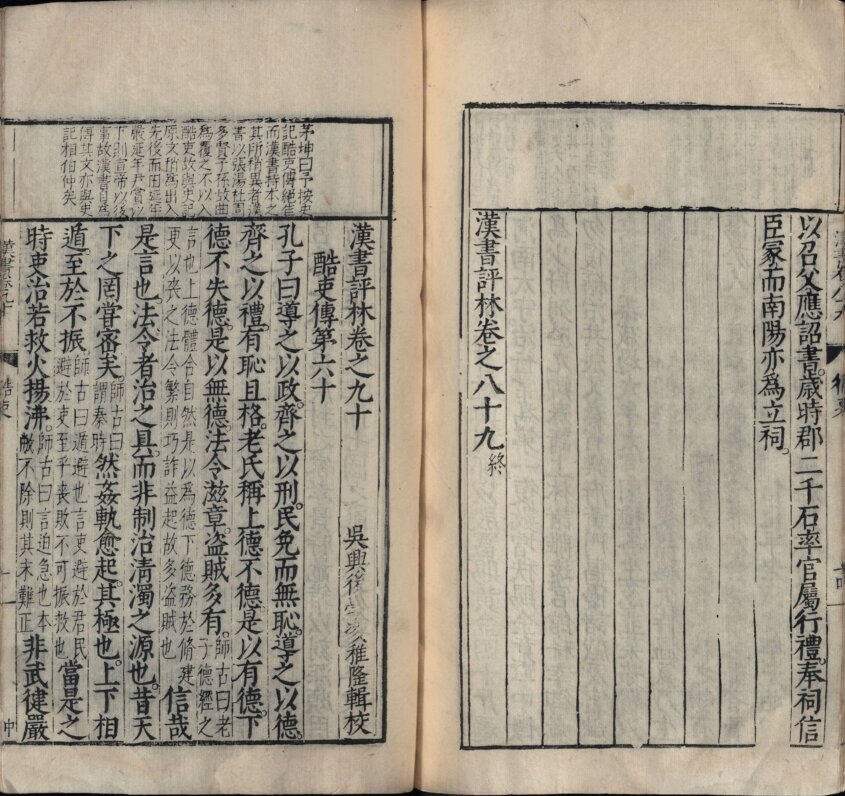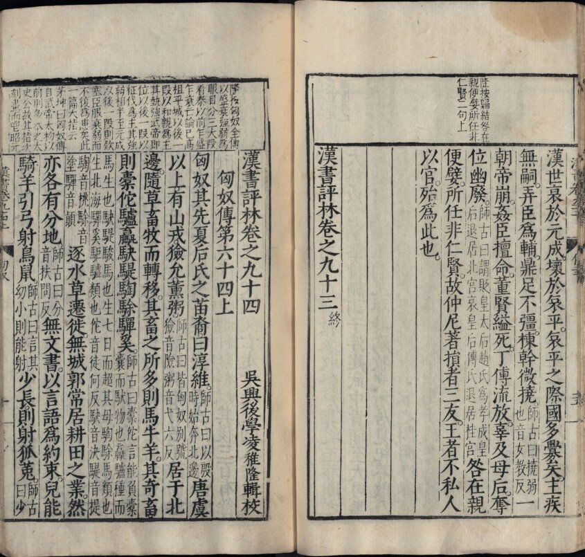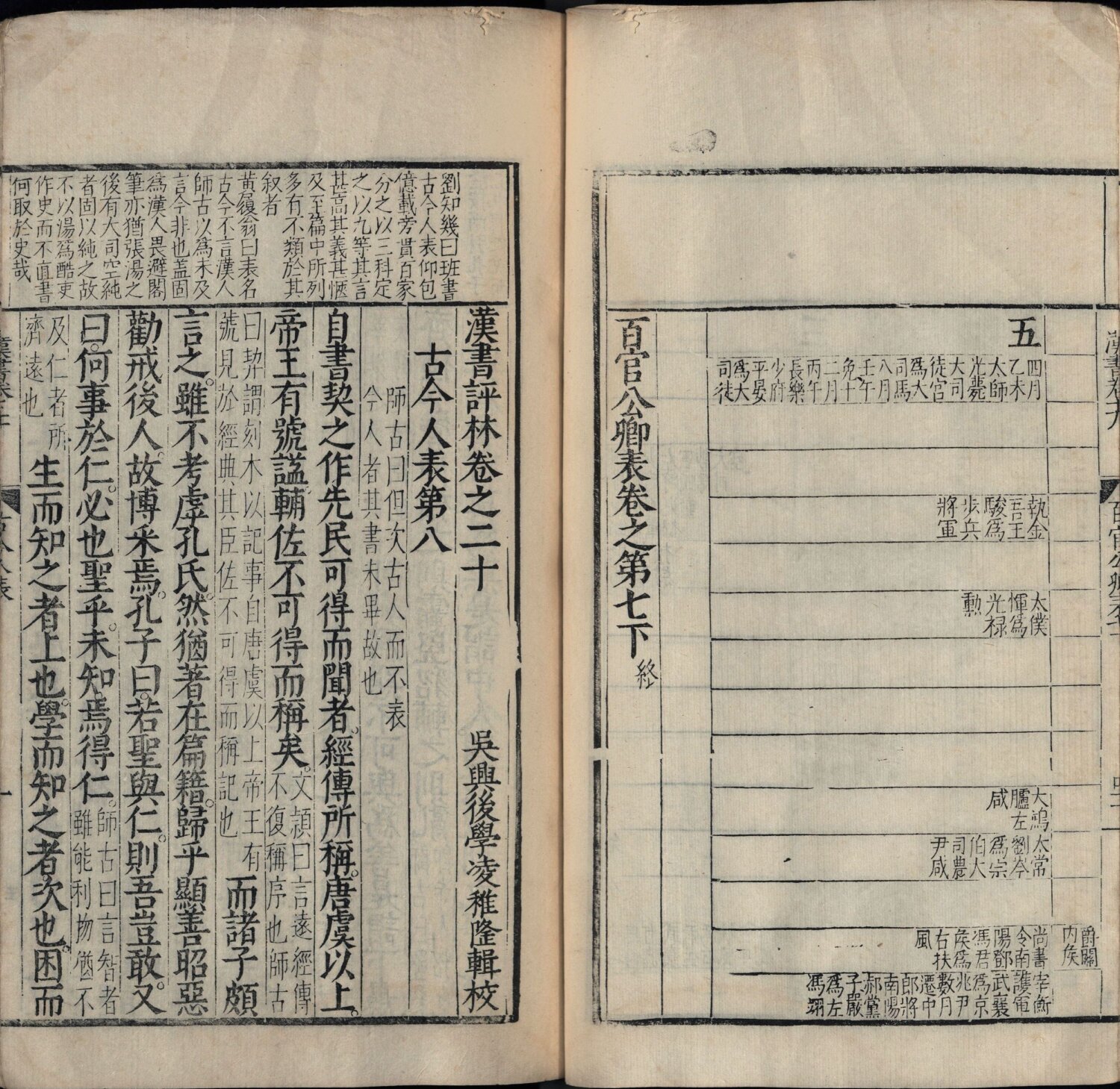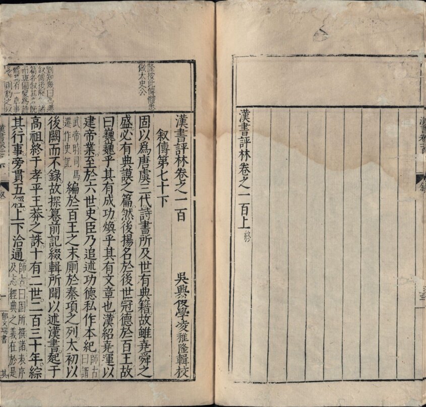汉书评林. 一百卷. 汉. 班固撰. 明. 凌稚隆辑评. 明万历十一年吴兴凌氏刊本