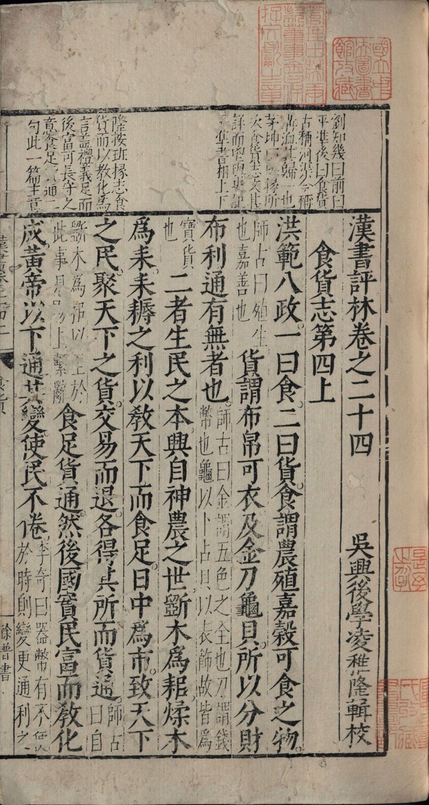 漢書評林序、萬曆辛巳王世貞刻漢書評林序、王宗沐凌氏新刻漢書評林序、何洛文刻漢書評林序、茅坤漢書評林序、萬曆癸未陳文燭
